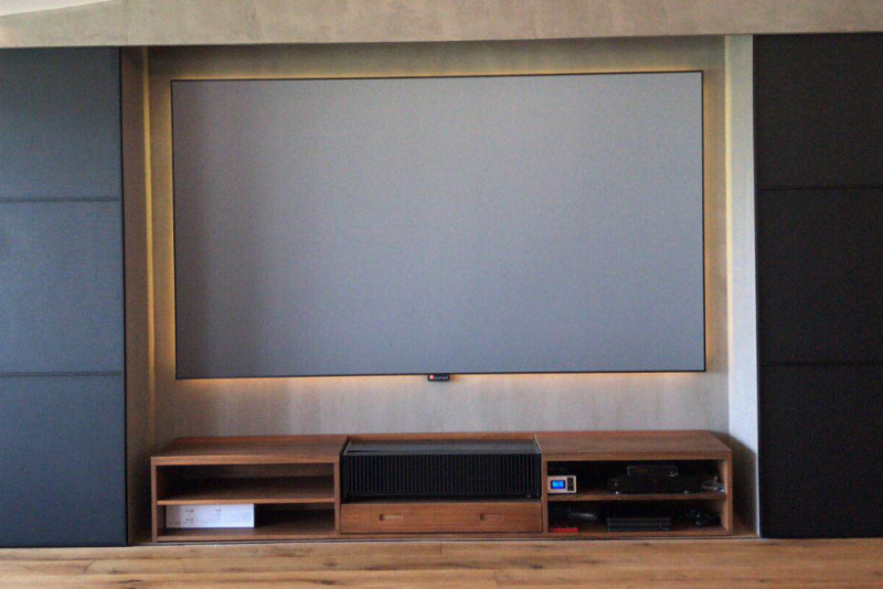 苏先生在网上找到我们的时候,我们了解完苏先生的信息后,给苏先生提供了解决方案,即降低了成本,又满足了苏先生大尺寸的要求,苏先生觉得非常满意。因苏先生在独立环境下使用,都是在不开灯的情况下使用,选择一个白软幕就是非常好的选择。装修完成后,苏先生觉得整体的效果比看到的搭配的硬幕的效果好很多。